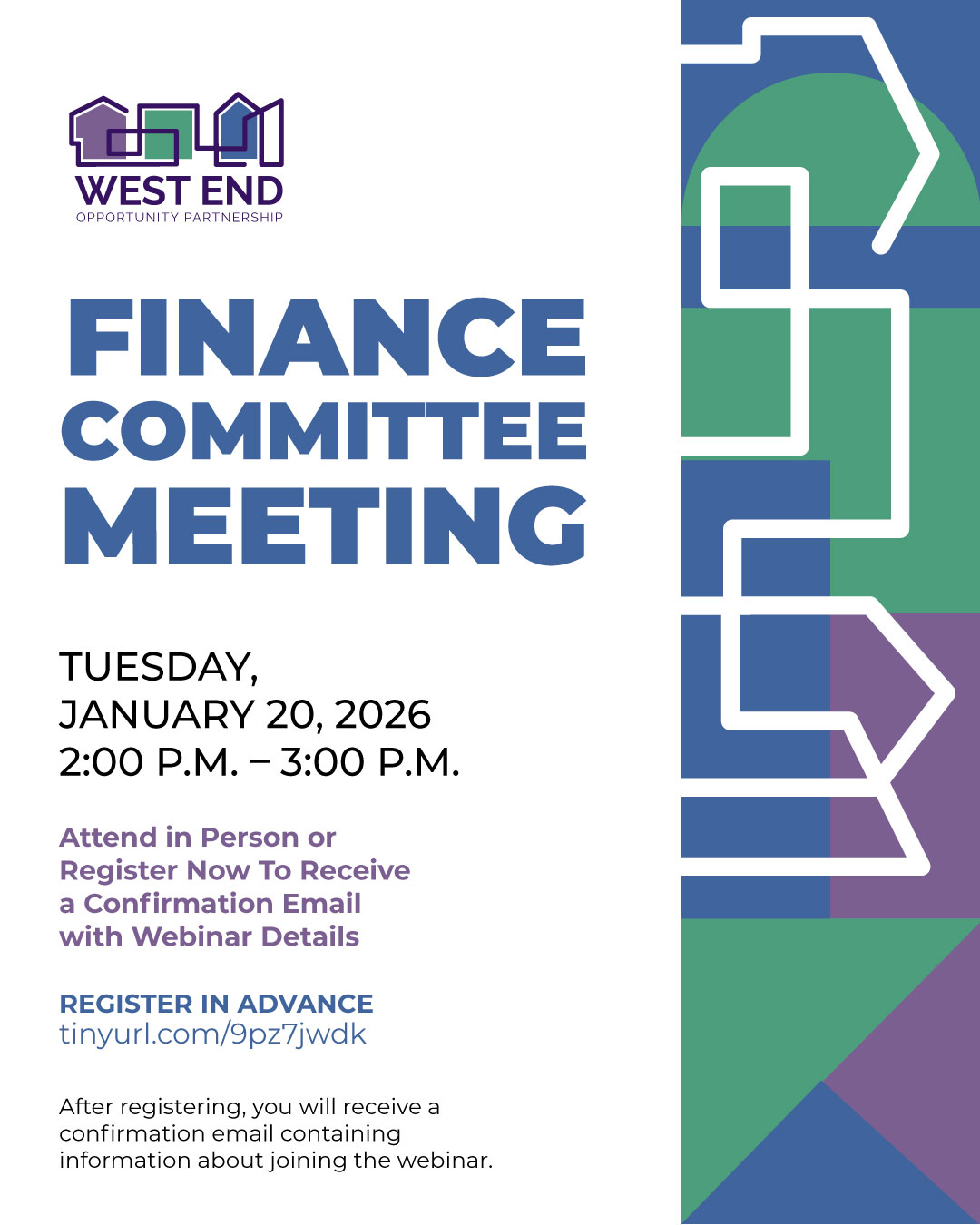 The West End Opportunity Partnership invites you to join us for our first Finance Committee Meeting in 2026.